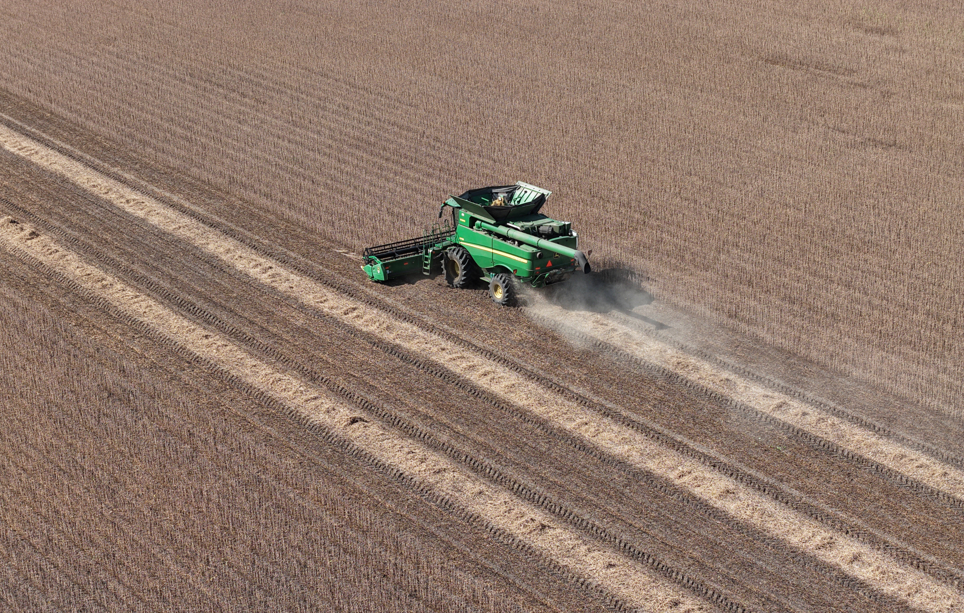 2025年9月23日,大型农业机械在进行大豆收获作业(无人机照片)。新华社记者 王松 摄黑龙江省已累计建成高标准农田1.2亿亩,为粮食生产蓄能。北安市农业开发服务中心技术负责人李宇生介绍,当地新建的30万亩高标准农田覆盖6个乡镇,总投资超7.5亿元,田间道路和田块整治等收尾工程已全部完工,为春耕顺利开展筑牢基础。