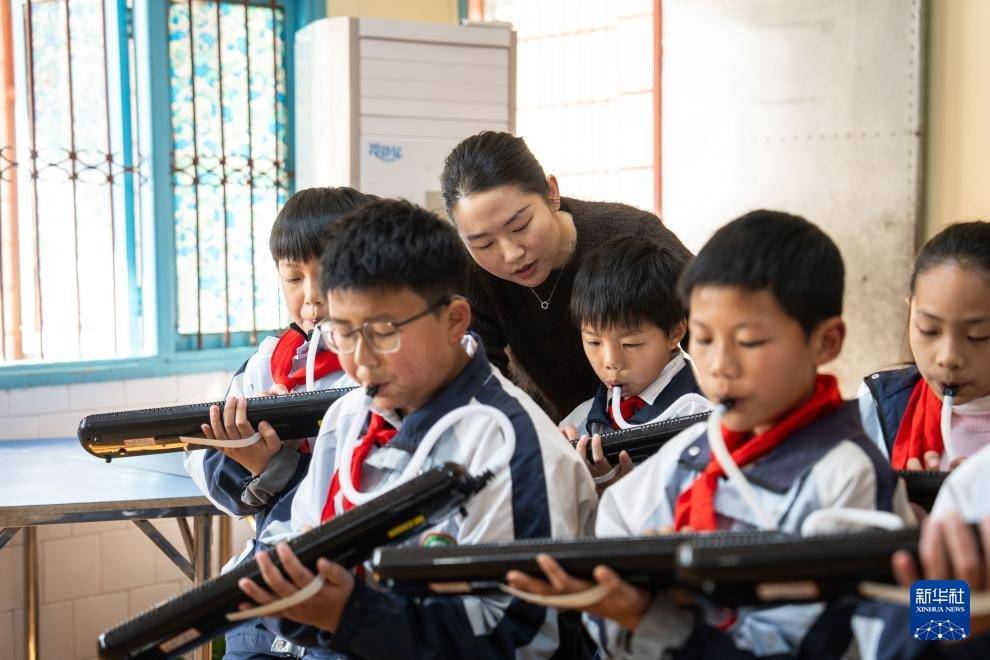 r近年来,湖南省益阳市南县加大对乡村小学音乐教育的支持力度,构建以口风琴为核心、多种小乐器协同的“一琴多器”教学模式,通过设计“技能奠基—协作合奏—创意表达”三阶内容,融入节奏游戏、小组合作与创编活动,提升乡村小学生的音乐素养。当地还结合音乐教师“送教下乡”机制,增加小学美育教育师资力量,促进城乡义务教育均衡发展。
