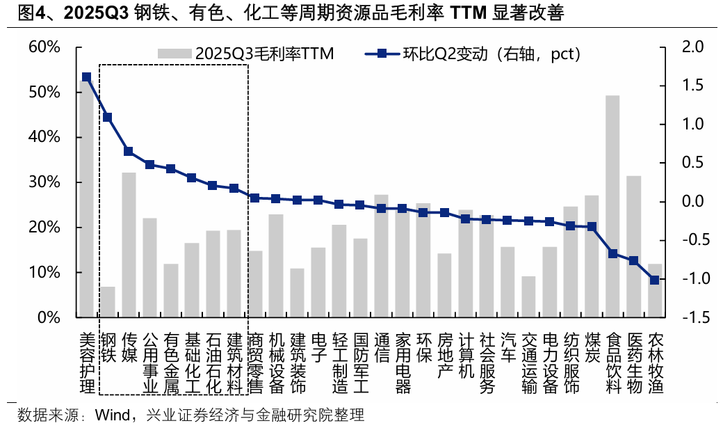 明年高景气:包括有色(能源金属、贵金属)、普钢、化工(化学制品、化学纤维)、零售、休闲食品等。